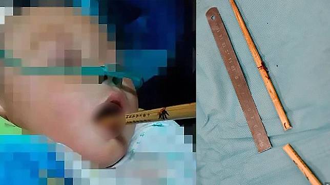 "Anak itu tersandung di sebuah ambang pintu dan sumpit itu menusuk mulutnya," kata ayahnya, Li.