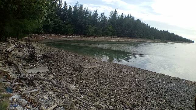 IDN Times mengikuti Sandi yang langsung berjalan ke sebuah jalan beraspal panjang di dalam pulau Panjang itu. Kami memarkir kapal kami di sisi pulau dan berjalan kaki ke dalam. Namun berjalan ke jalan beraspal panjang itu tidak mudah. Hanya ada tempat berjalan dengan lebar kurang dari 60cm yang terbuat dari batu karang. Sebelah kanan jalan setapak itu adalah laut dan sebelah kiri tumbuh tanaman liar dengan tanah yang lembek.