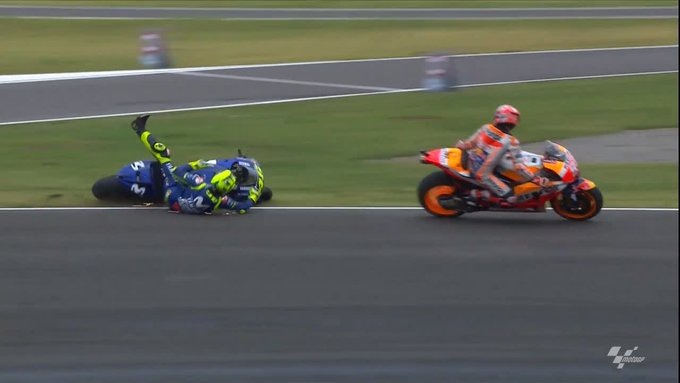 Selanjutnya, sempat membuat pembalap tim Marc VDS, Thomas Luthi dan Franco Morbidelli juga terpinggirkan. Puncaknya, bikin Valentino Rossi dipepet dan terjatuh di lap 22 tikungan 13.