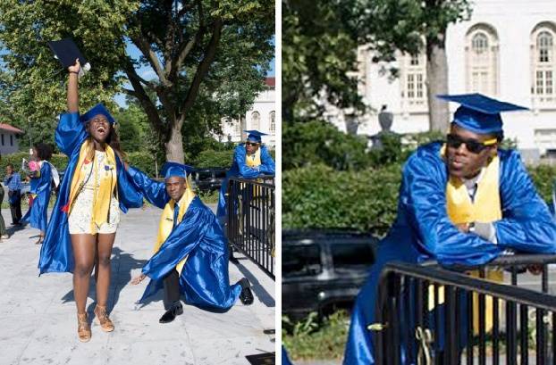 4. Seseorang sedang ingin mengenang masa lalu ketika baru diwisuda, pakaiannya lengkap banget.