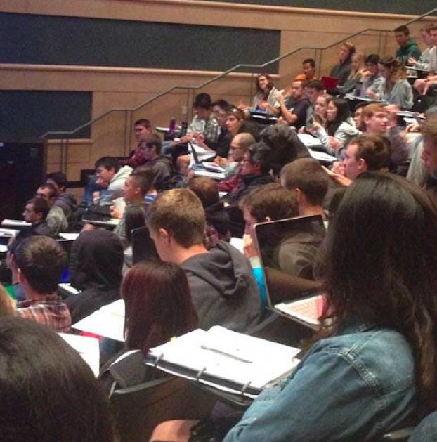 13. Ada 'mahasiswa asing' saat profesor menjelaskan materi kuliah.