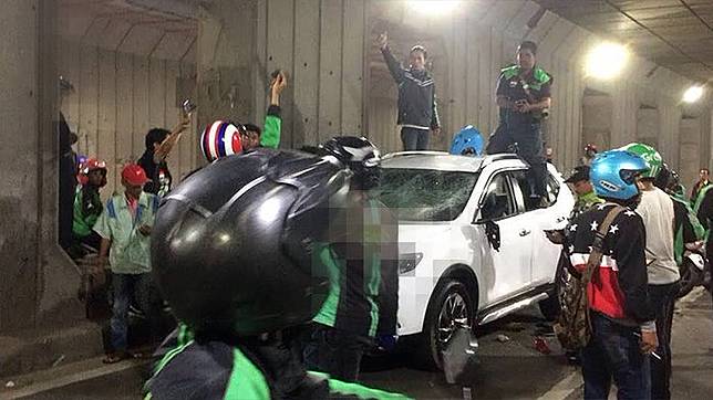 Tidak terima dengan perkataan sopir, sejumlah pengendara ojol yang berada di sekitar mobil merasa emosi dan langsung menghampiri sang sopir.